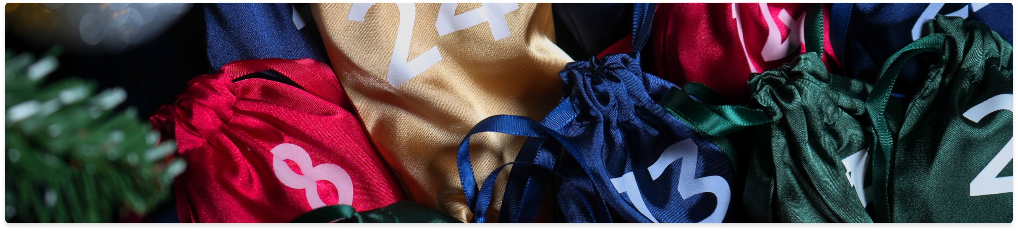 Die Seidenbeutel des Adventskalenders lassen sich mehrfach verwenden. Befüllen Sie sie im nächsten Jahr einfach selbst als individuellen Adventskalender oder als besonderes Geschenk zum Weitergeben. Ideal für alle, die Wert auf Stil und Nachhaltigkeit legen.