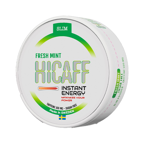 Hicaff Fresh Mint Nikotinfritt Snus ist ein Produkt der Marke Hicaff, hergestellt von Microzero AB. Es ist ein Koffeinprodukt im Slim-Format, das weder Tabak noch Nikotin enthält, jedoch Koffein beinhaltet. Die Stärke wird als ohne Nikotin definiert. Diese Produkteigenschaften betonen den Fokus auf eine Alternative ohne Tabak und Nikotin, ergänzt durch das Vorhandensein von Koffein.
