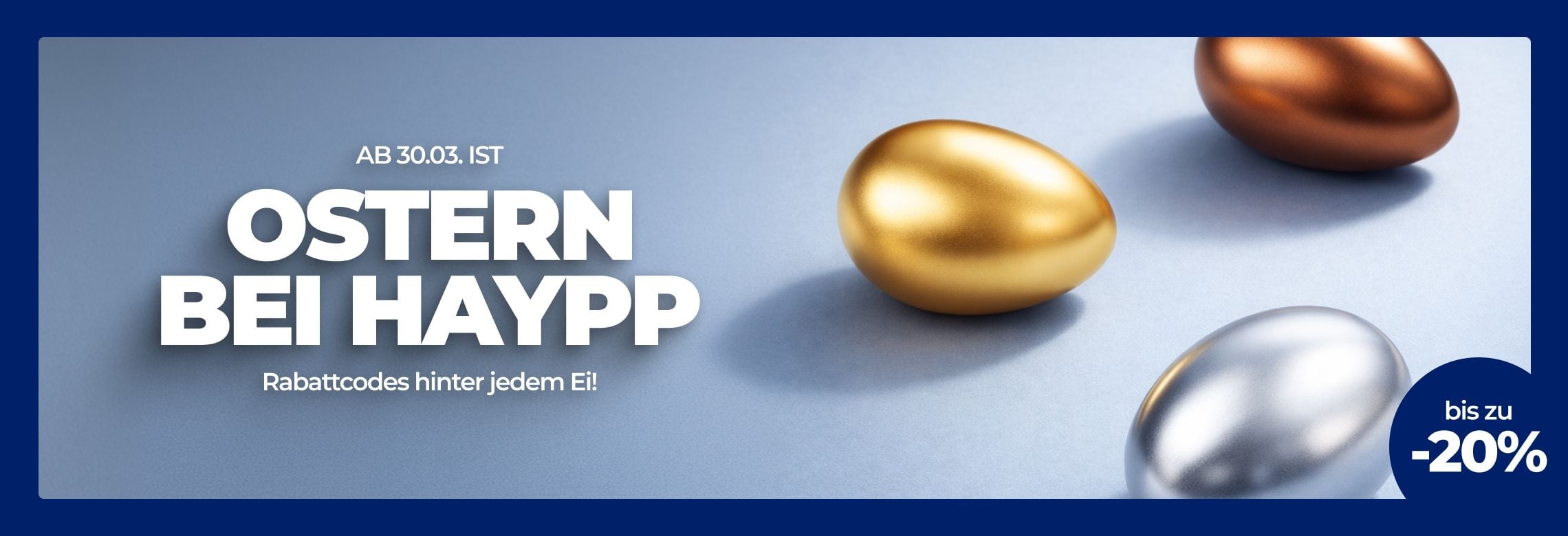 Ab dem 30.03. warten im Haypp Shop versteckte Eier mit exklusiven Rabattcodes auf Sie! 🐣