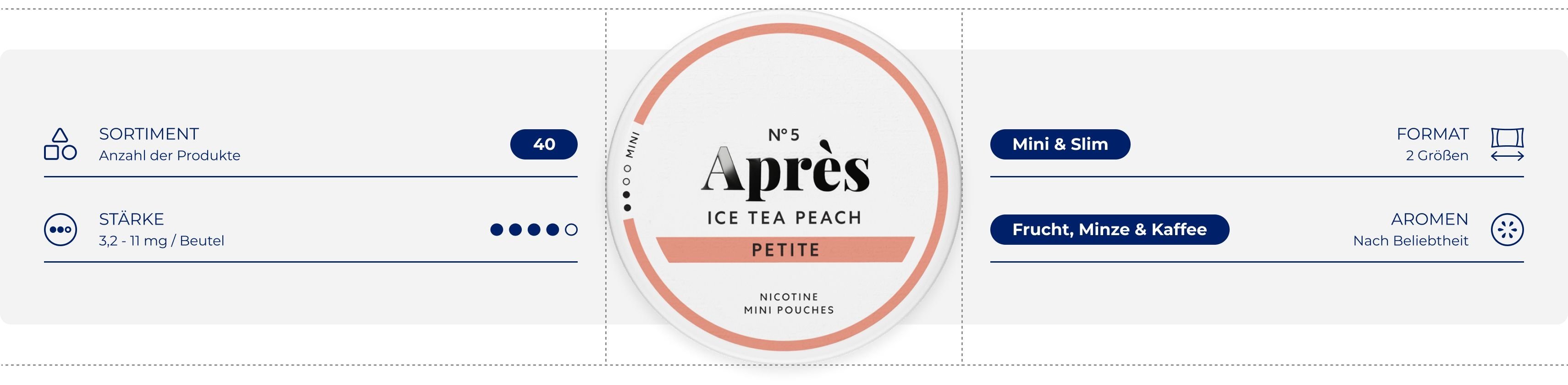 Entdecken Sie Après Nicotine Pouches in verschiedenen Geschmacksrichtungen und Nikotinstärken. Die Nikotinbeutel sind im Mini- und Slim-Format erhältlich.
