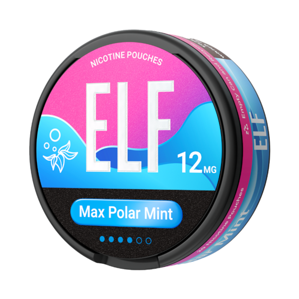 ELF Nicotine Pouches Max Polar Mint 12mg present a strong mint flavour, classified as extra strong strength, and are available in a slim format with 20 pouches per can.